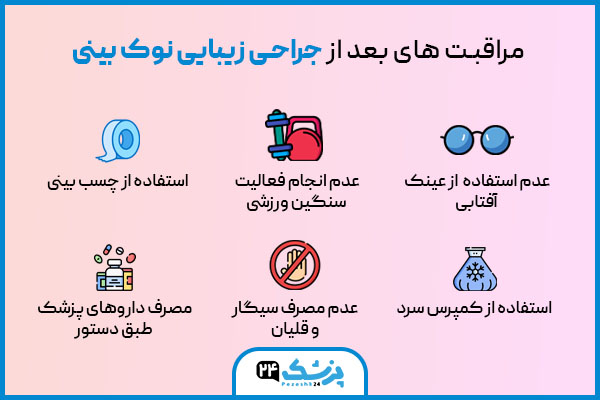 - تا 2 ماه بعد عمل بینی برای عدم ایجاد تغییر روی ساختار بینی از زدن عینک آفتابی خودداری کنید.