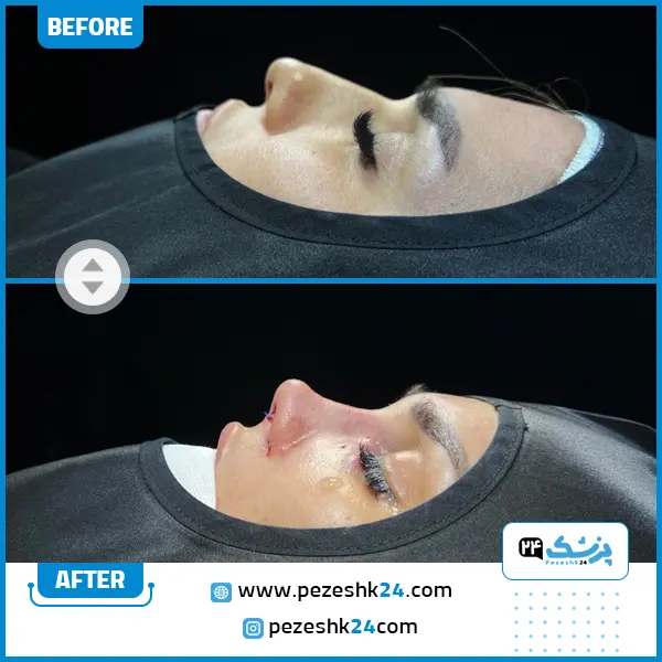 در ادامه میتوانید نمونه قبل و بعد عمل بینی دکتر کشاورزمنش را مشاهده کنید: