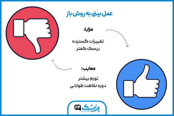 - میزان التهاب و تورم بعد عمل در روش باز بیشتر است (4 تا 6 هفته).