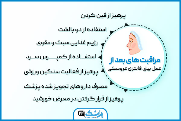 رعایت یک سری از نکات مراقبتی بعد عمل بینی عروسکی فانتزی منجر به بهبود سریعتر میشود که در ادامه به این موارد اشاره شده است: