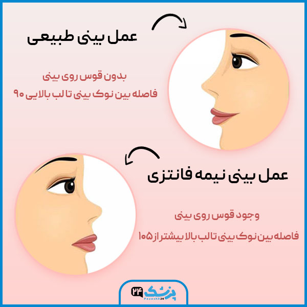 عمل بینی عروسکی فانتزی با توجه به نوع بینی، تناسب با دیگر اجزای صورت شما و نظر جراح انجام میشود. در عمل بینی فانتزی عروسکی فاصله بین لب بالا و نوک بینی حدود ۱۰۵ درجه است و روی بینی قوس بیشتری ایجاد میشود. شما میتوانید جهت دریافت اطلاعات بیشتر در مورد عمل بینی عروسکی (فانتزی) و دریافت ویزیت اولیه با بهترین جراح بینی برای عمل بینی فانتزی از طریق راههای ارتباطی داخل متن مقاله با مشاورین پزشک ۲۴ به صورت رایگان ارتباط برقرار کنید.