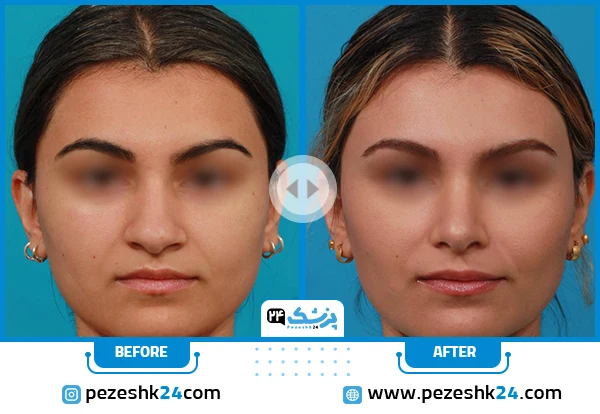 ورم بینی گوشتی کی میخوابه؟ در عمل بینی گوشتی معمولا میزان ورم بینی به دلیل داشتن بافت چربی بیشتر و پوست ضخیمتر نسبت به بینی های استخوانی بیشتر است. همچنین به مدت زمان طولانیتری برای بهبودی کامل تورم و التهاب آن نیاز دارد. بهبود ورم بینی گوشتی ممکن است بیشتر از 1 تا 2 سال طول بکشد. از آنجایی که احتمال ایجاد اسکار بعد از عمل بینی در پوست ضخیم بیشتر است و مایعات بیشتری در بافت اسکار نسبت به سایر بافت ها حفظ میشود در این نوع مدل بینی به دلیل داشتن پوست ضخیم، زیباجویان تورم و التهاب بیشتری بعد از جراحی را تجربه میکنند. در ادامه نمونه قبل و بعد ورم بینی گوشتی بعد از عمل بینی را میتوانید مشاهده کنید.