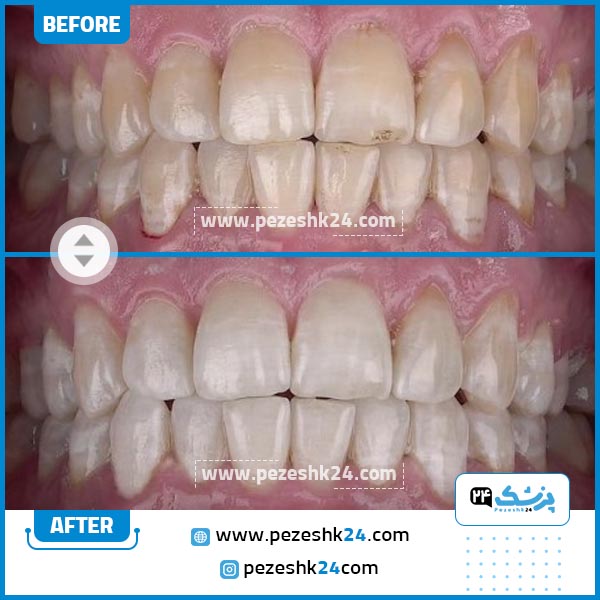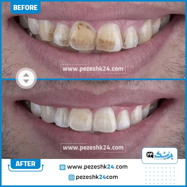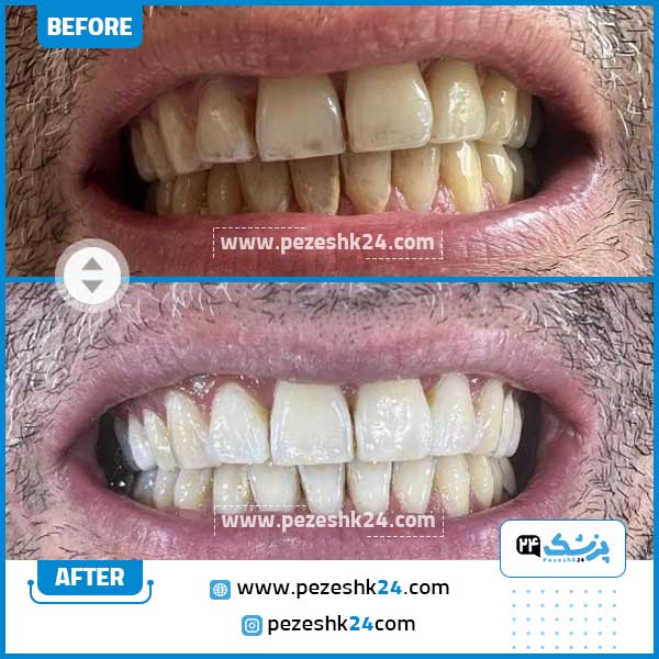 در ادامه میتوانید نمونه قبل و بعد بلیچینگ دندان دکتر محسن حسینی را مشاهده کنید: