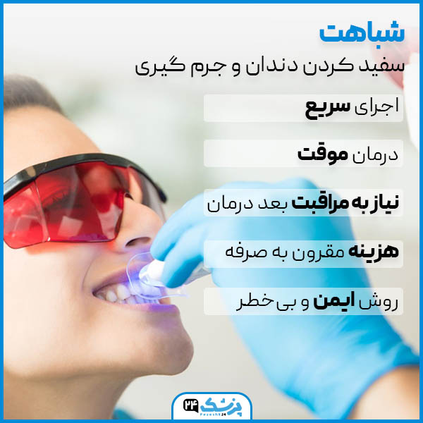 سفید کردن دندان با بلیچینگ و جرمگیری شباهتهایی دارند که شامل موارد زیر است:
